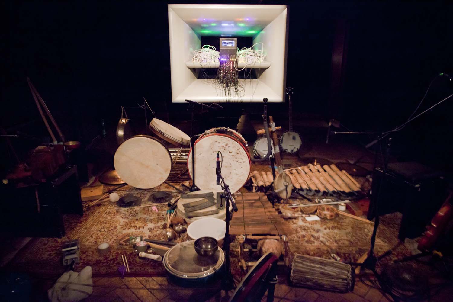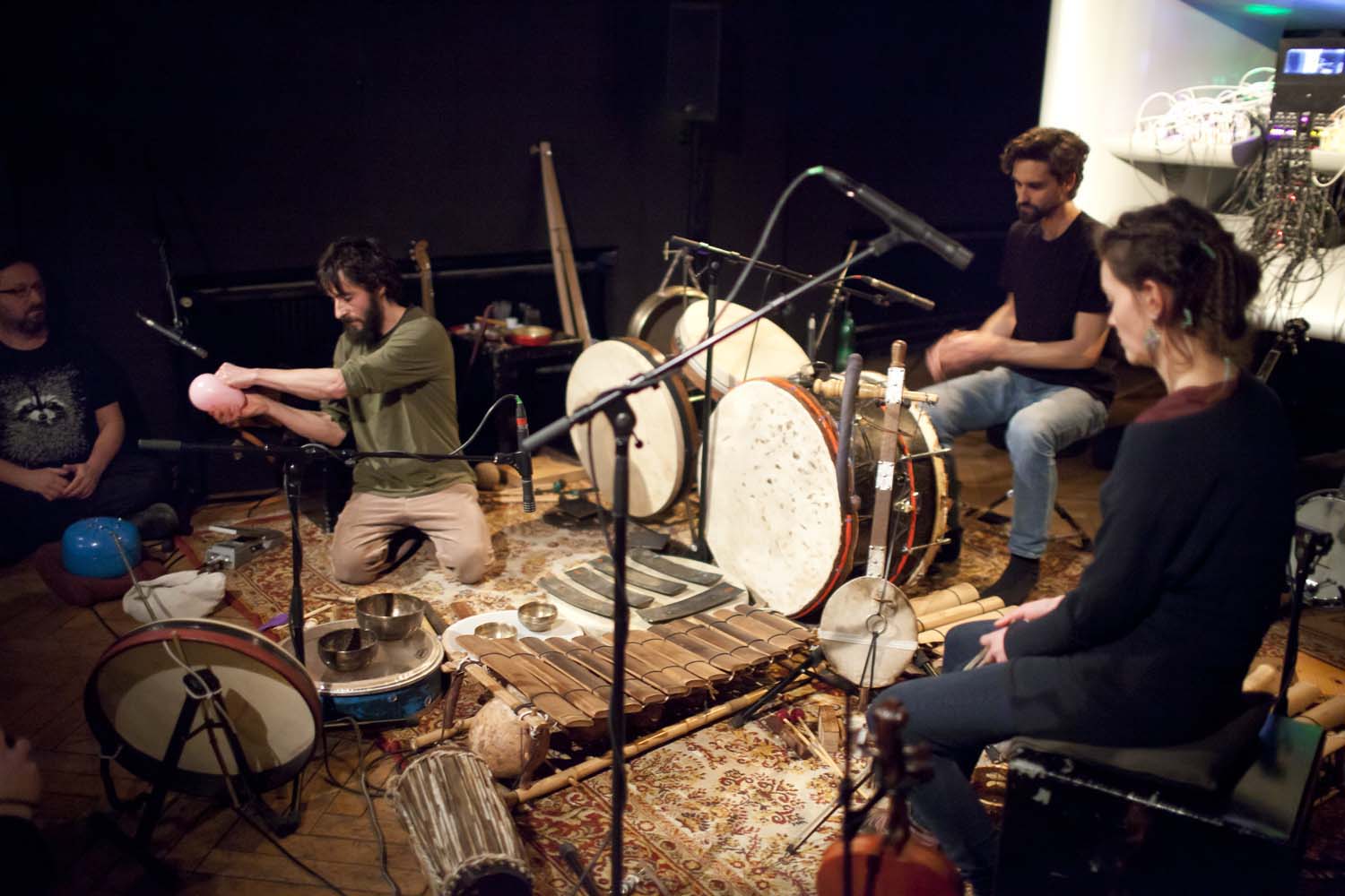 Širom play vividly textured and mostly imagined folk music(s). Fusing handmade and global instruments with fearless sound exploration, the results are unbound by tradition or geography. Members of the trio come from Prekmurje, the Tolmin area, and the Karst Plateau. Their work is noted for its fusion of polyphony and psychedelic music with folk, classical and improvisational elements.