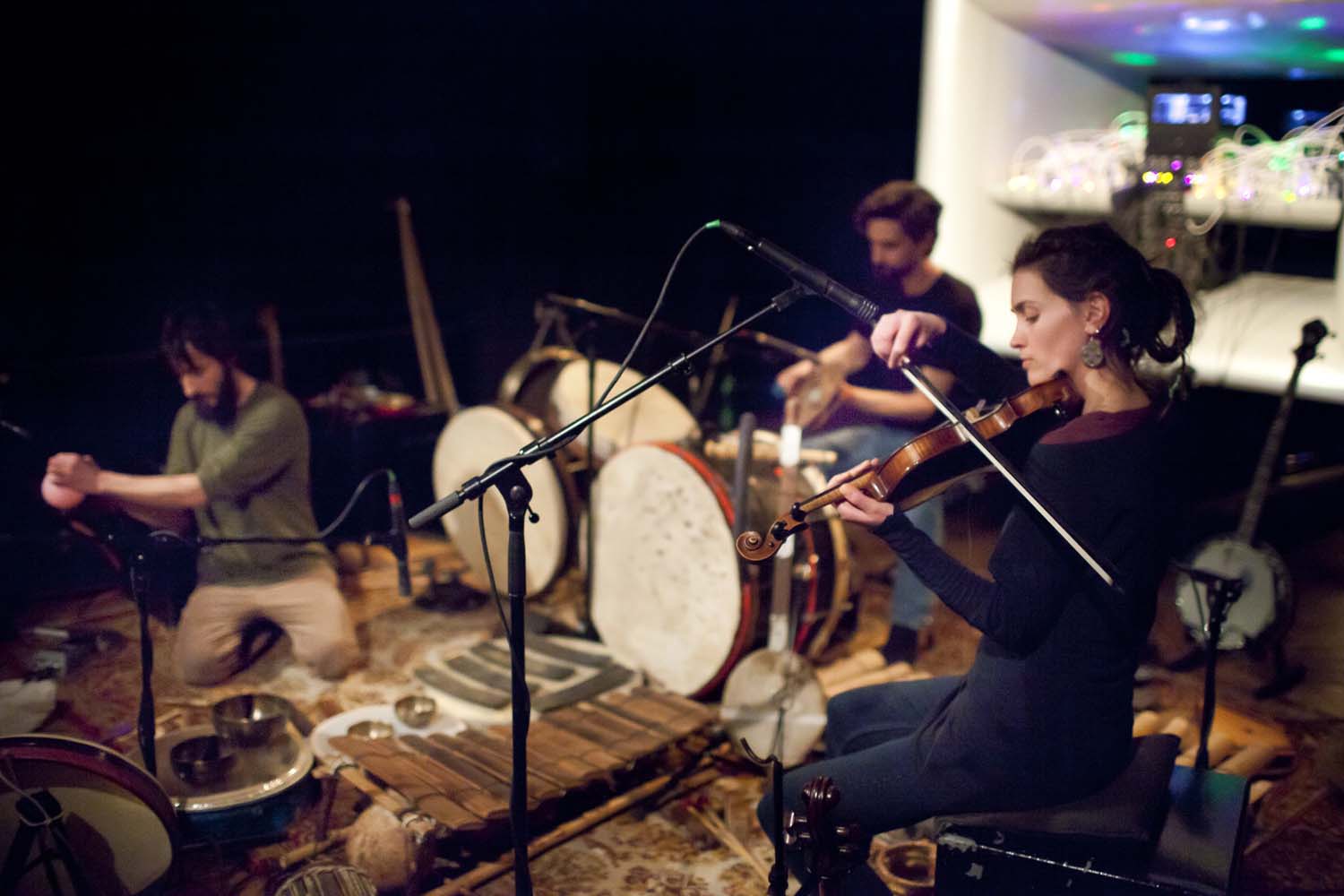 Širom is Slovenian trio formed in 2015, consisting of Iztok Koren (banjo, bass drum, chimes, balafon), Ana Kravanja (violin, viola, ribab, kalimba, bendir, balafon) and Samo Kutin (ukulele, kalimba, tamburica, harps, balafon, sound objects).