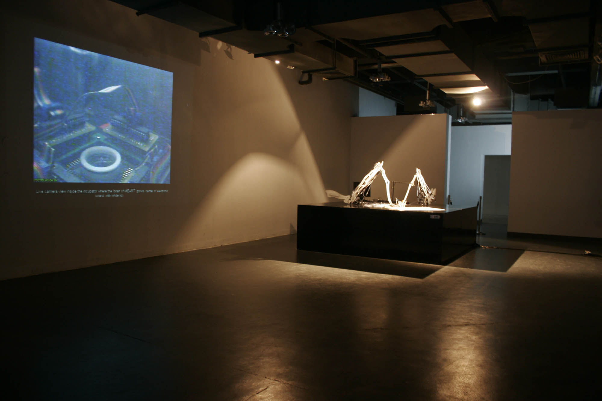 MEART is an installation distributed between two (or more) locations in the world. Its “brain” consists of cultured nerve cells that grow and live in a neuro-engineering lab, in Georgia institute of Technology, Atlanta, USA (Dr. Steve Potter’s lab). Its “body” is a robotic drawing arm that is capable of producing two-dimensional drawings. The “brain” and the “body” will communicate in real time with each other for the duration of the exhibition.