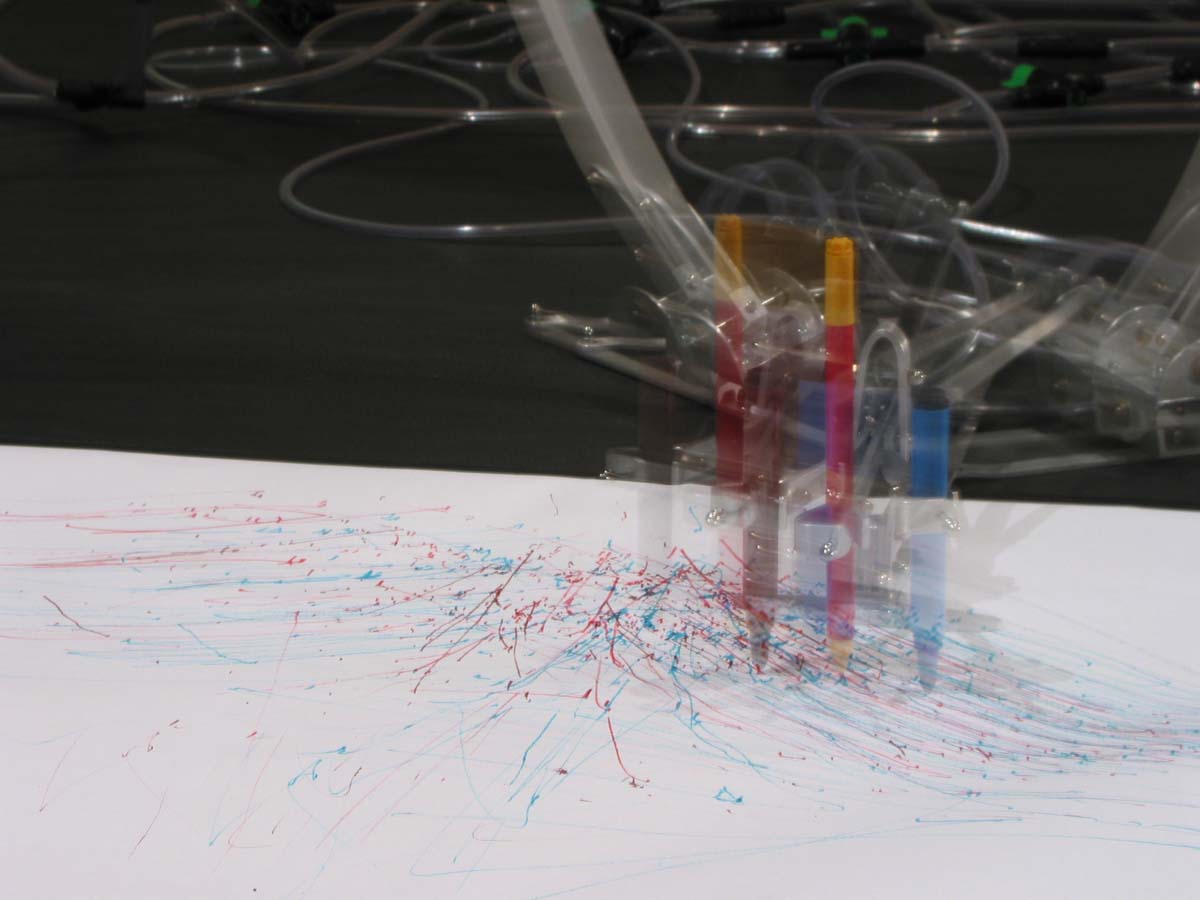 We refer to the wetware/software/hardware hybrid we have created as a Semi-Living artist as it is made of both living and artificial components; part grown – part constructed. While the artistic values of the outcomes of the process (the marks on paper left by the drawing arm) are still in the eye of the beholder, the questions regarding the possibilities are real. What will happen when such a system starts to express qualities that are considered uniquely human aptitudes such as art? Its identity extends beyond our cultural comprehension of living systems. Made from living biological matter, mechanics and electronics simultaneously, it questions the viewer’s perceptions of the concept of sentience.