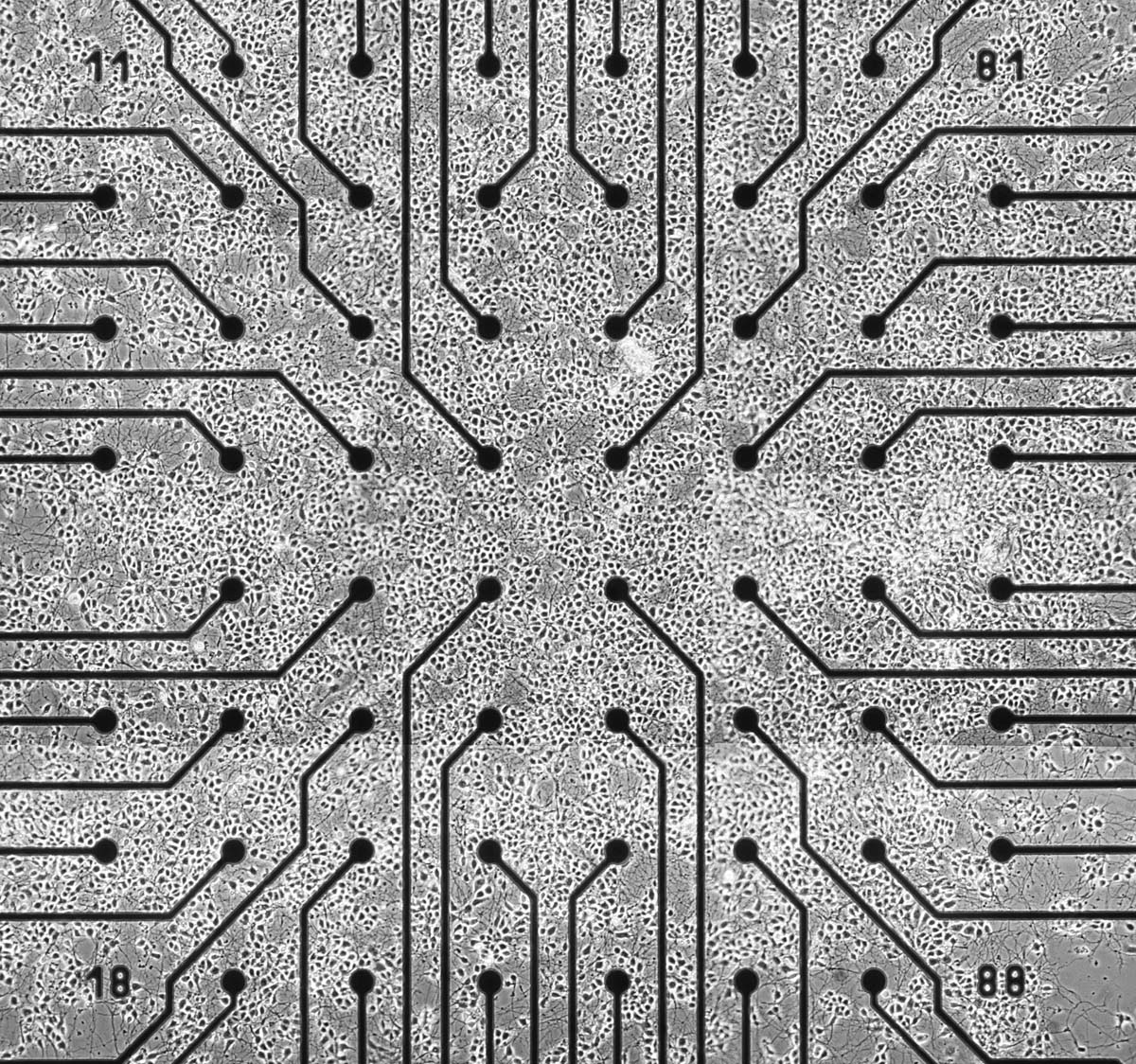 By reducing the input to the neurons to a simple geometric shape – The Black Square, we are giving MEART a task that it should be able to cope with efficiently and thus allow us to examine the relationship between the input (stimulation – the black square) and the output (the drawings that result from the stimulation to the neurons), to try and detect some sort of an emergent behaviour of this semi living entity.